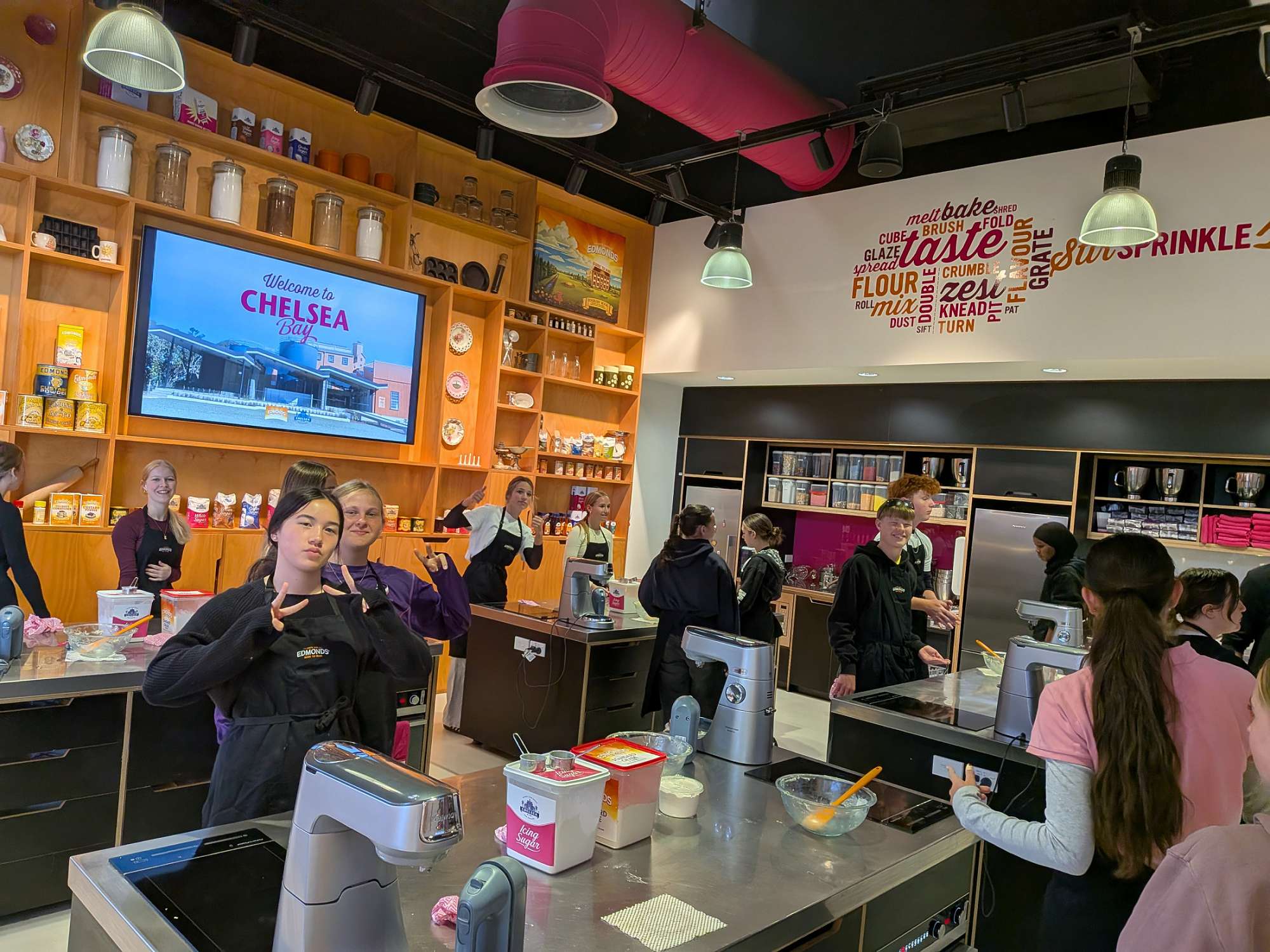 After seeing how the sugar was made, the students headed into the interactive kitchen to put that very same Chelsea sugar to use. They rolled up their sleeves and got to work baking some classic, sweet Kiwi yo-yo biscuits.