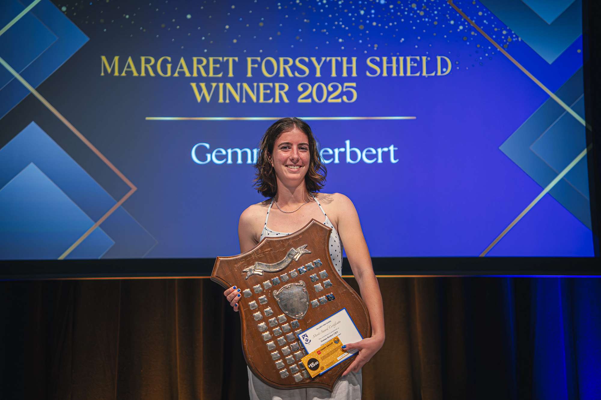 The winner of the Margaret Forsyth Shield is Gemma Herbert! Gemma has contributed a massive amount to sport at HHS and the wider region. She coaches both football and futsal in the junior programme, is a very active and well-regarded football and futsal referee within the WAIBOP region, and demonstrated excellent leadership as a player and as a reliable member of the sports council.