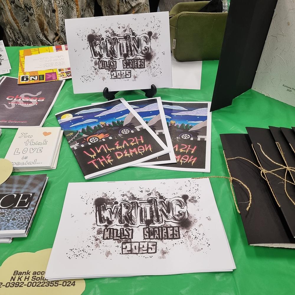 Miriam Adams, Sheina Angon, Sheena Zheng and Shakya Jayawardena also all created zines and stickers over the last term about a whole range of subjects to sell at Zine Fest 2025, while Poet Nadia Solomon created zines with the Hilly Scribes writing group over the Term. Students from Zine Club helped out on our table throughout the day!
