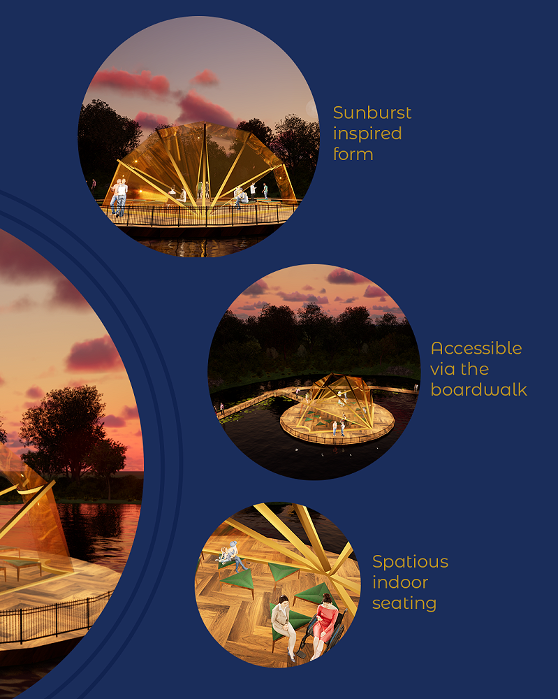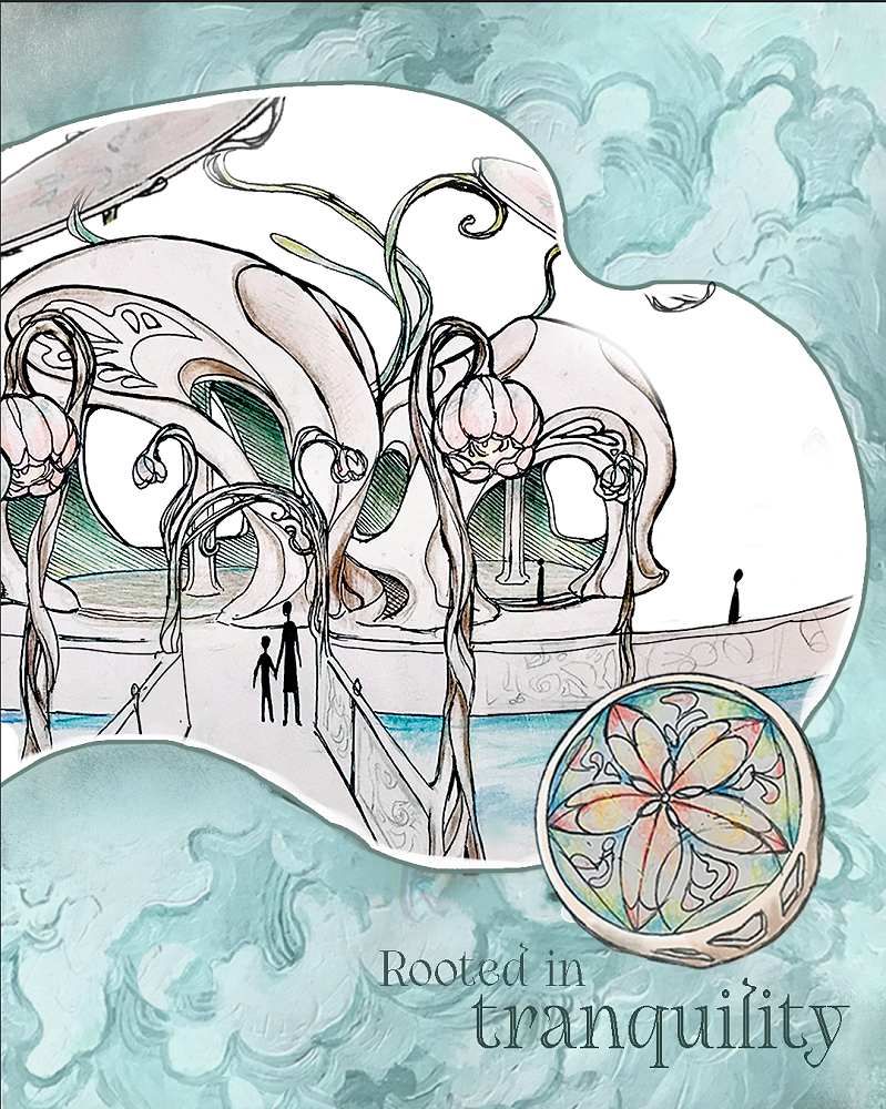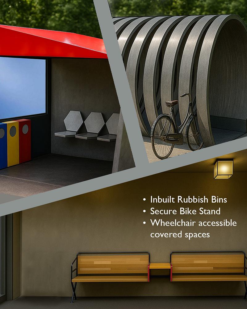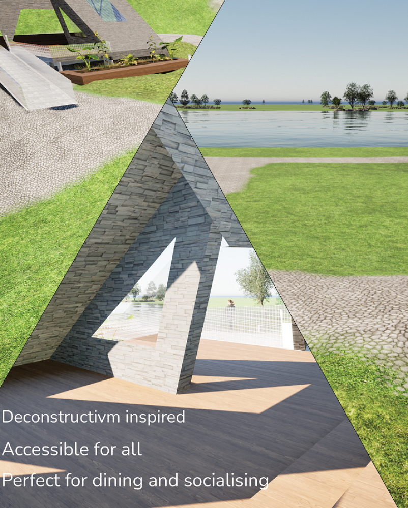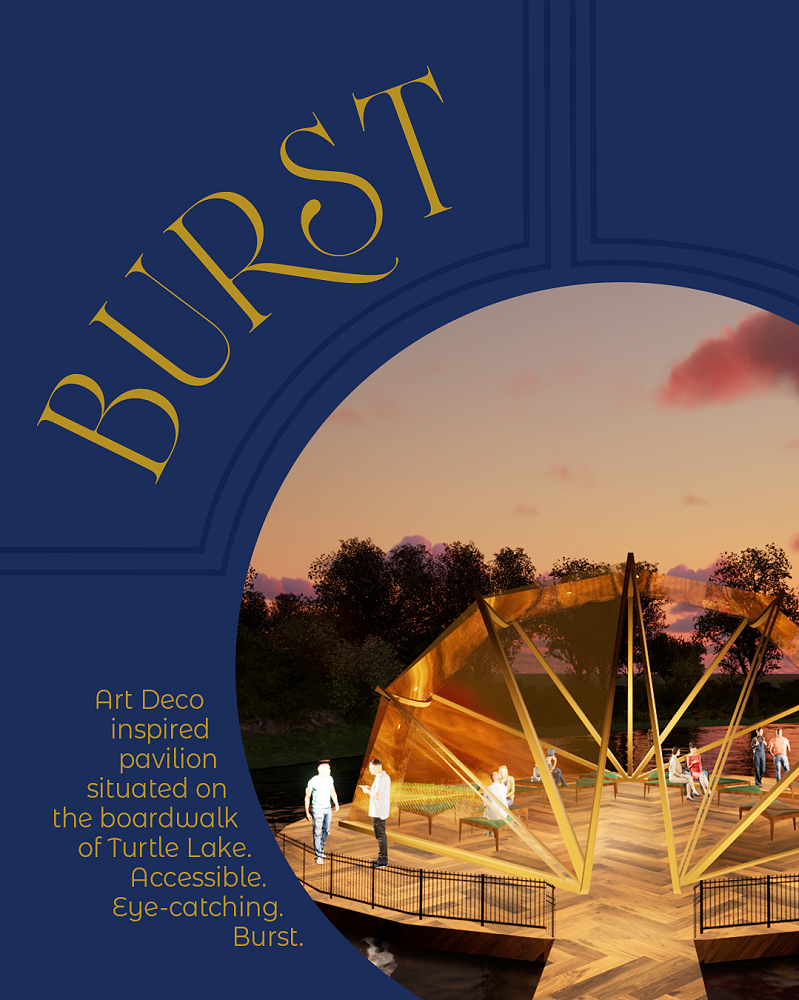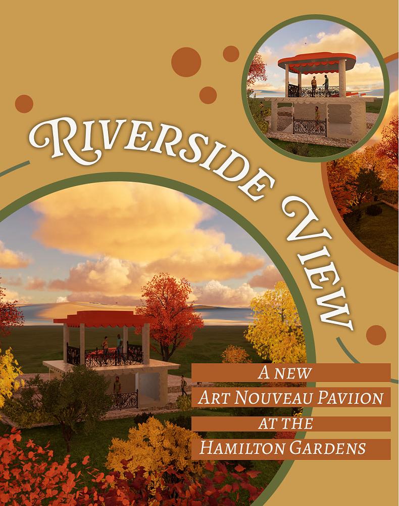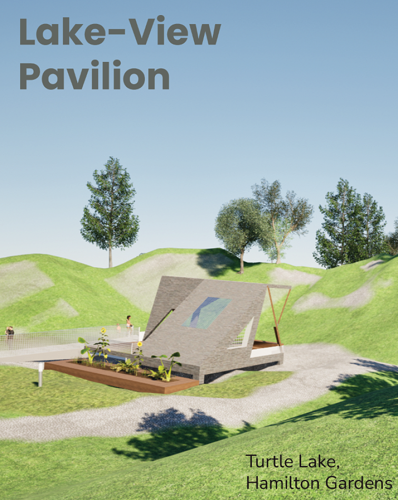 They were tasked with designing a Bus Shelter or Pavilion for the Hamilton Gardens, inspired by a key design movement like Art Nouveau, Deconstructivism, Bauhaus, or Art Deco. These posters are the final promotional pieces for their designs.