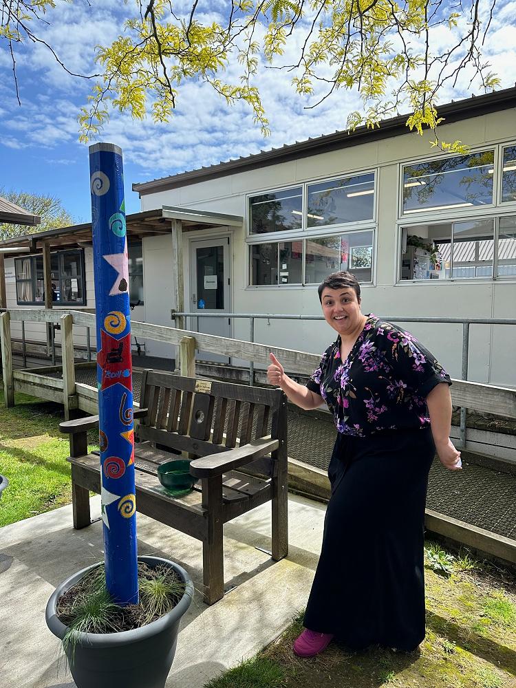 We were very fortunate to have Erica join us and share her idea of creating the PAC pou. We enjoyed her mahi and aroha. We loved having other Hillcrest High School staff join us, our Music and Drama specialists Ms Binks and Mr Baker joined us as did Specialist Teacher Margie Bardsley and Deputy Principal Amber Ganley. After the blessing we shared some kai.