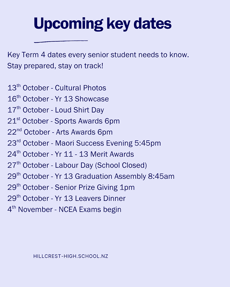 We warmly invite parents, caregivers, and whānau to join us as we celebrate another successful year at Hillcrest High School.