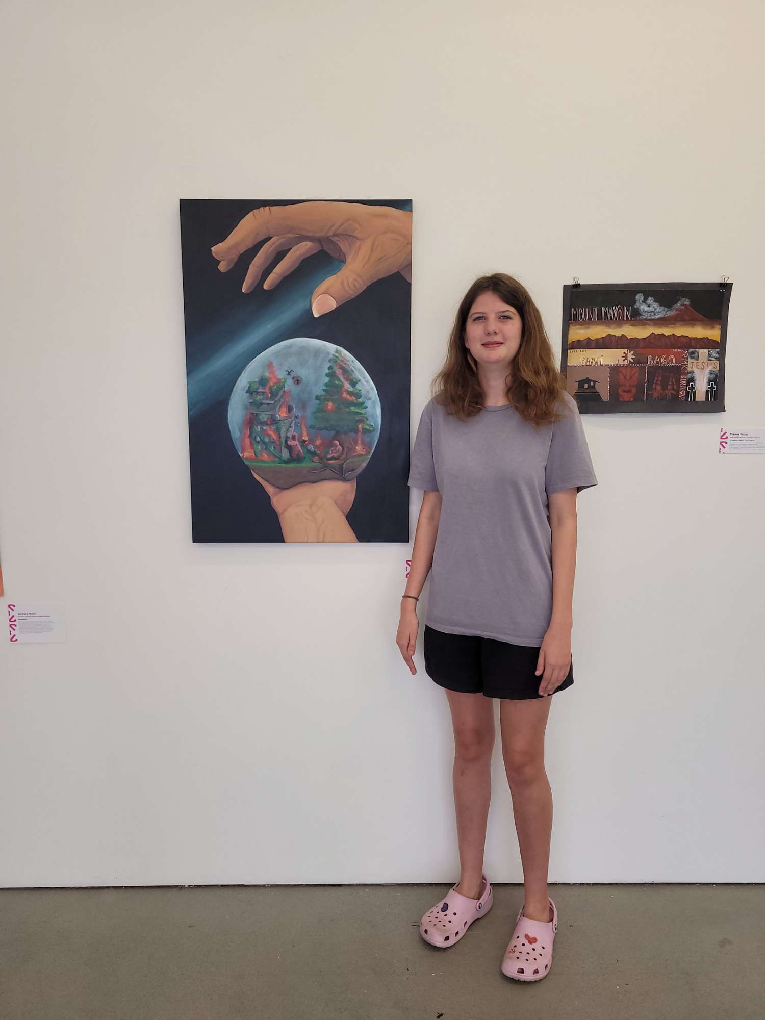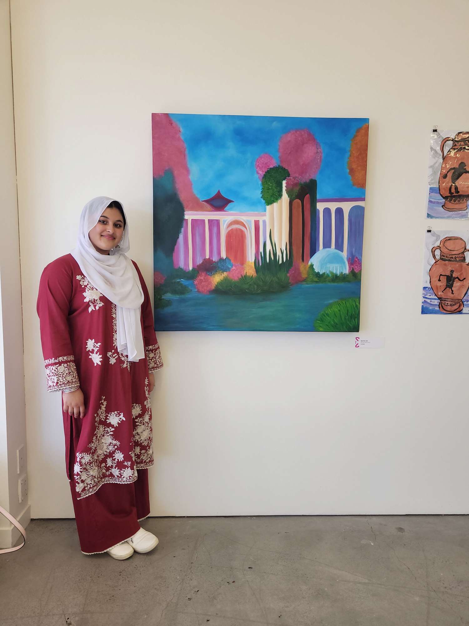 Over the term break, three of our senior Visual Art students had their work exhibited in the ANZAAE Student Art Exhibition at Wintec’s X Block Gallery. Against some stiff competition, Joy Zhang, Aymen Ali and Miriam Adams made it to the final exhibition of artwork which featured primary, intermediate and secondary schools across Waikato who were asked to respond to the theme of Kotahitanga. Students were treated to an exhibition opening of their works where they got to share their works with friends and whaanau.